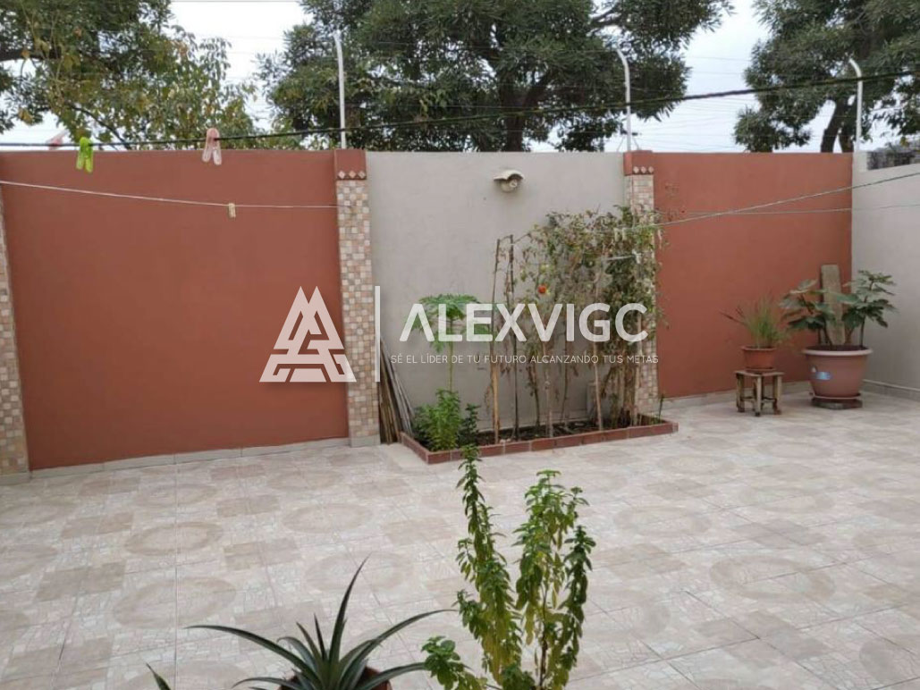 Retiro frontal con área de parqueo y piso de cerámica, pasillo lateral con puerta de ingreso, área de lavandería cerrada y lavadero techado, amplio patio posterior con piso de cerámica.